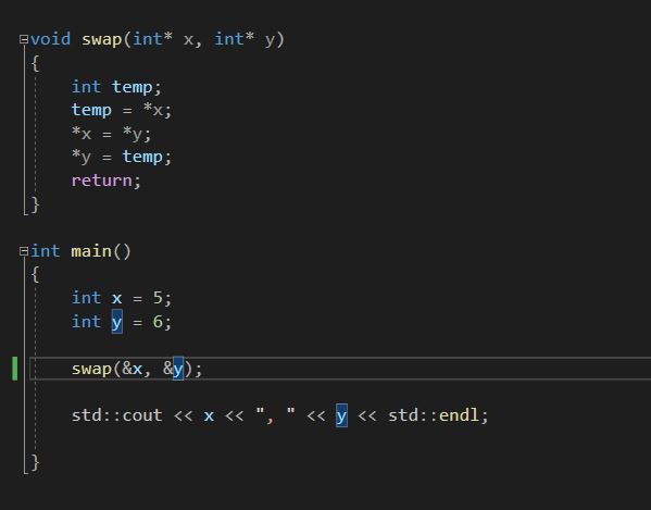 한마디로 포인터를 사용한 Pass by reference 를 사용하게 된다면 함수 스코프 바깥에 선언된 변수조차