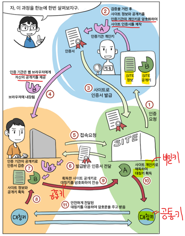 서버와 공개키 암호에도 통신하는 서버가 가짜일 수 있다는 문제가 존재한다.