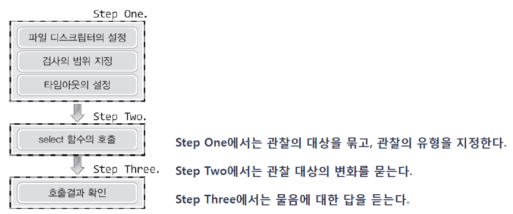그리고 select 함수의 호출 방법 및 순서는 다음과 같다.